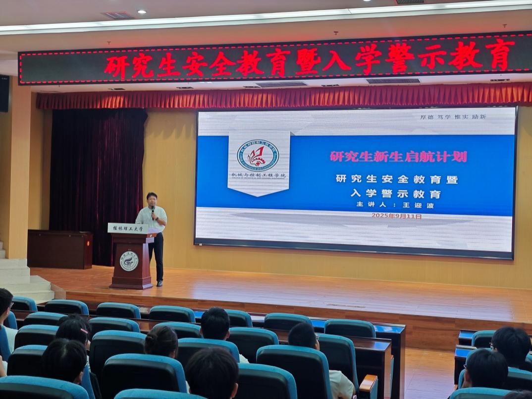 2025年9月11日下午,学院在图书馆报告厅成功举办“研究生安全教育&入学警示教育”专题讲座。本次讲座由学院党委副书记王迎波主讲,研究生辅导员滕漳红老师及全体2025级研究生共一百二十余人参加。