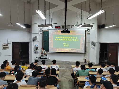 培训开始,刘培培老师为大家分析了2022年就业的整体形势以及专业相关行业的发展前景,鼓励同学们大胆自信地求职应聘。同时,她就有关简历的制作及有关注意事项向同学们耐心讲解,并结合学院往届学子的现实就业案例,对同学们面试过程中容易遇到的问题和求职技巧进行深入浅出的分析。最后,对于就业前的准备工作,她从心理准备、知识准备、能力准备和就业信息获取等进行了全方面的指导,使同学们收获甚多。
