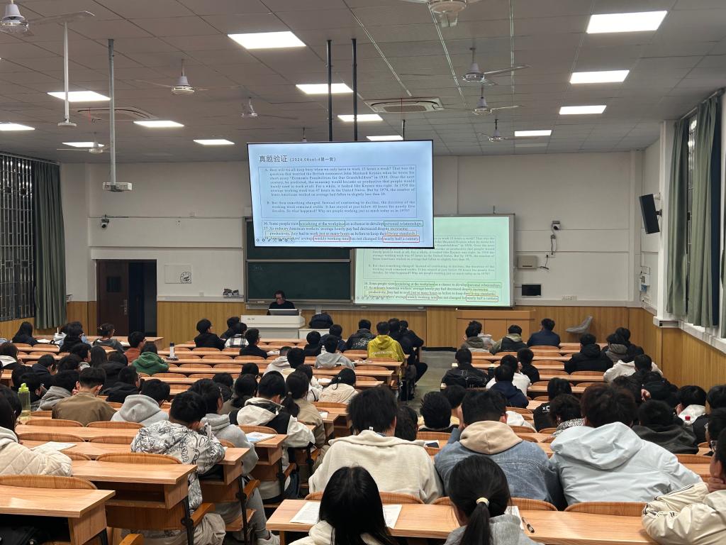 为全面推进学风建设,有效提升学生英语综合应用能力,我院于11月18日在06509成功举办大学英语四级作文专项辅导讲座。本次讲座特邀外国语学院资深教师张华担任主讲,这是本学期继听力、阅读培训之后举办的第三场四级专项辅导活动,旨在帮助学生掌握写作技巧,为即将到来的大学英语四级考试做好充分准备。