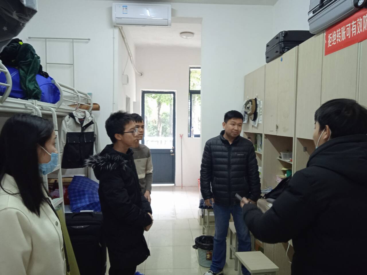 会议结束后,王迎波副书记带领全体辅导员到学生宿舍进行走访巡查,了解学生到校情况和宿舍环境卫生状况,督促学生做好自身防护,并注意宿舍用水用电安全。